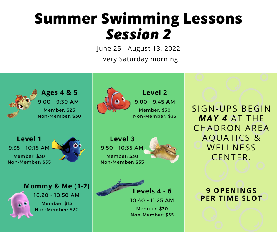 Posted on: May 9, 2022[ARCHIVED] Chadron Area Aquatics Center Swimming Lessons Sesson 2